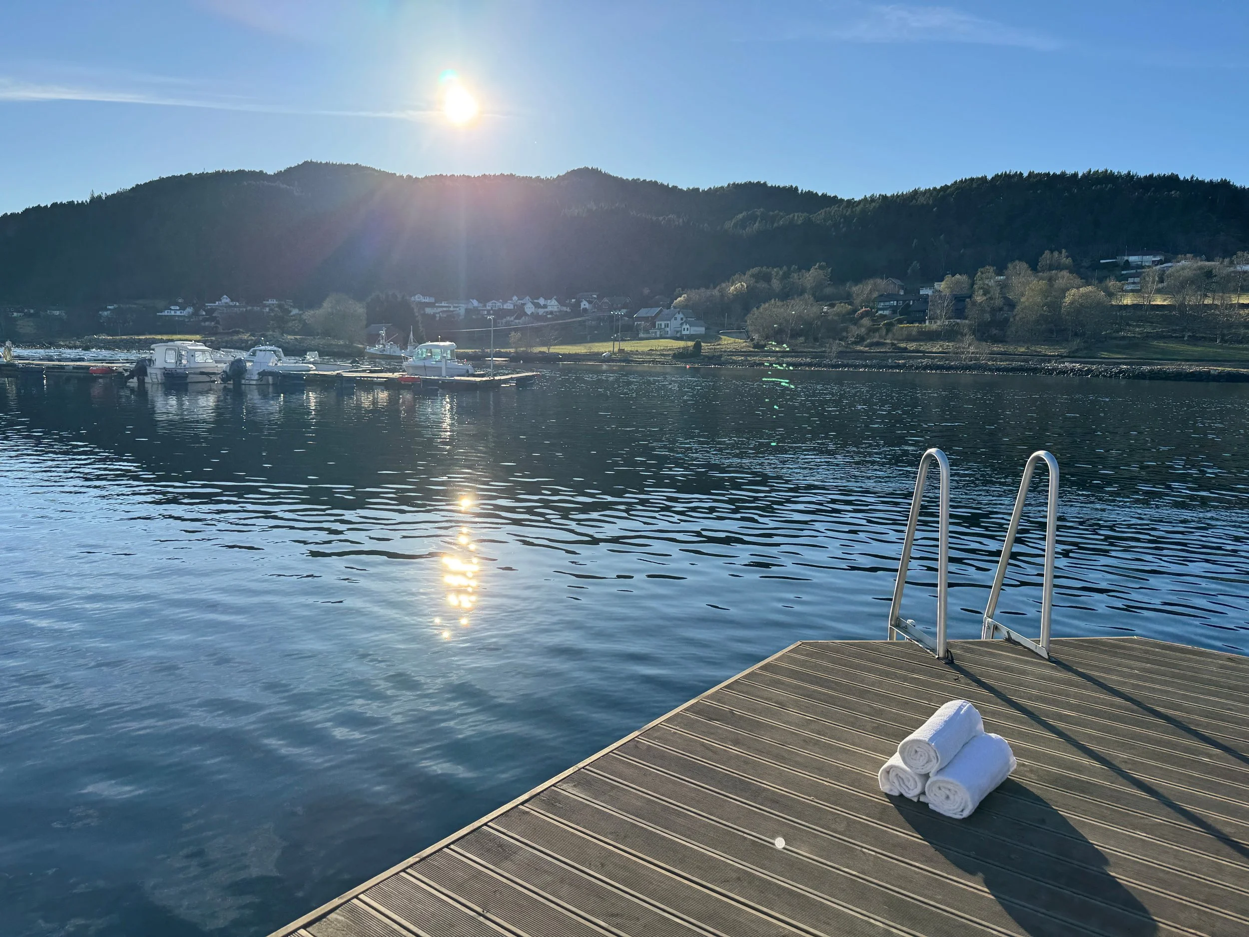 Selve saunaen står plassert på en flytebrygge med fantastisk utsikt over fjorden og nærområdet. Vi anbefaler sterkt et friskt bad i sjøen sammen med saunaen for en revitaliserende opplevelse, men det er selvsagt helt frivillig. Saunaen har en kapasitet på maks 18 personer.